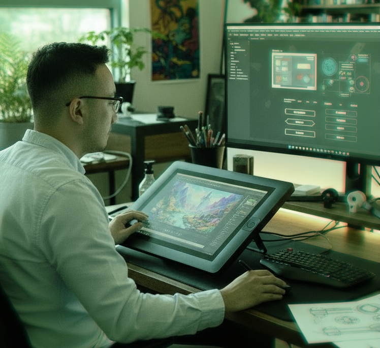 Over the last two decades, I have built a diverse creative career spanning advertising, print, industrial design, and digital product development. Since entering the tech and gaming industry in 2010, I have expanded from a 2D artist to a full-stack UI/UX designer. This practice also includes concept development, visual storytelling, and brand-forward design solutions.