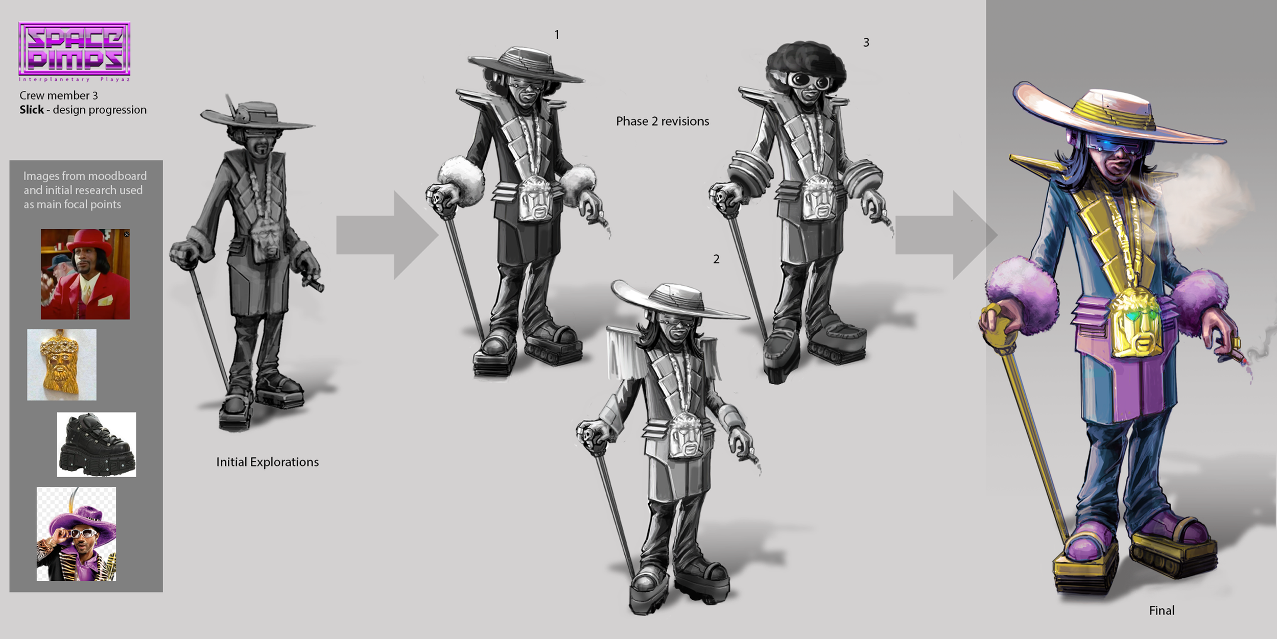 Space Pimps character 3 design progression, 2018.