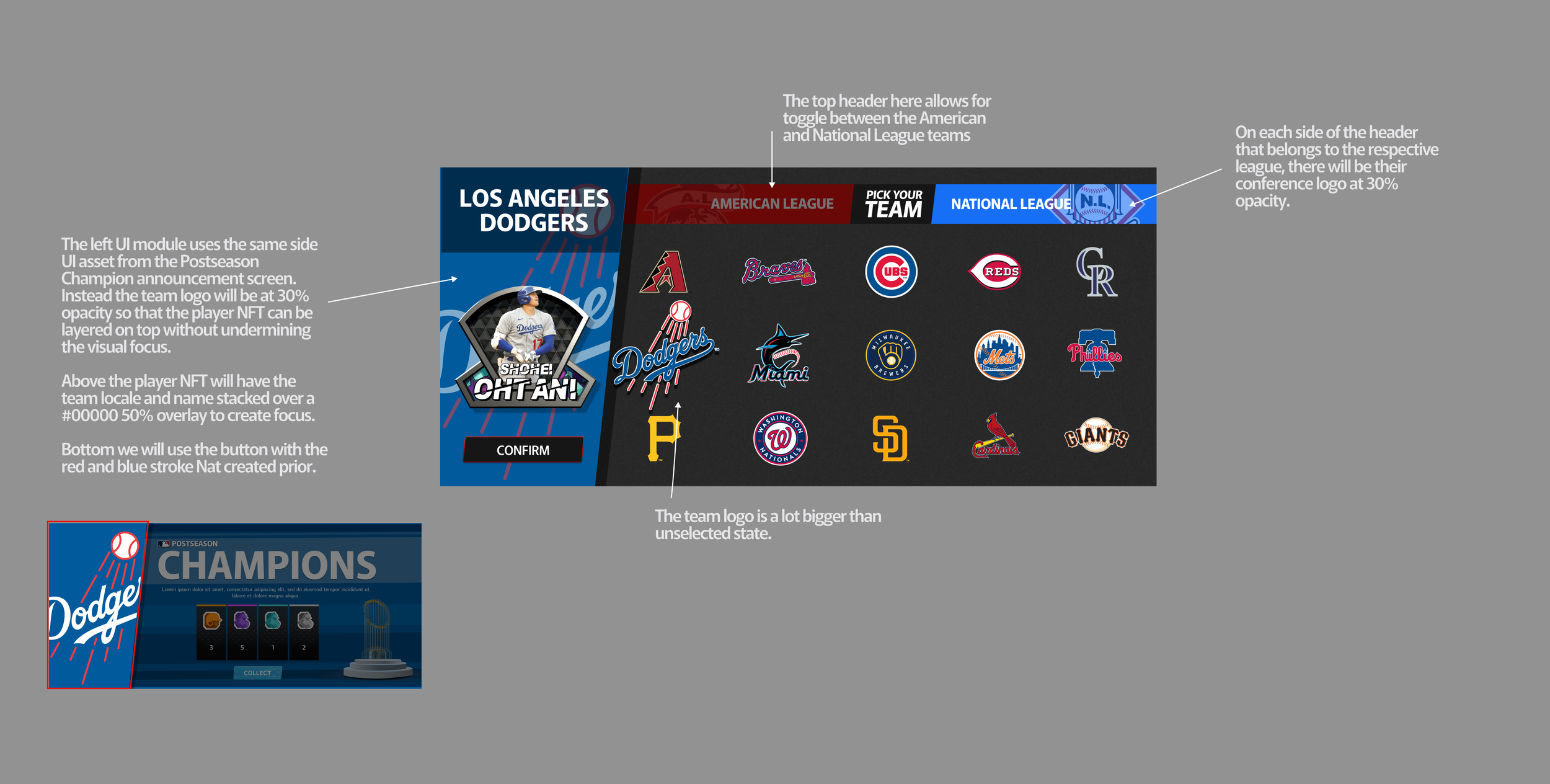 From there, I redefined the game’s UI direction, overseeing the redesign of critical systems including the pregame matchup and results screens, team selection, tier rewards progression, stadium building, and the in-game store. A key strategic decision was to establish a retro-arcade visual identity, borrowing from Vegas-style sports slot machines to align with management’s vision for a Web3/NFT-driven framework.