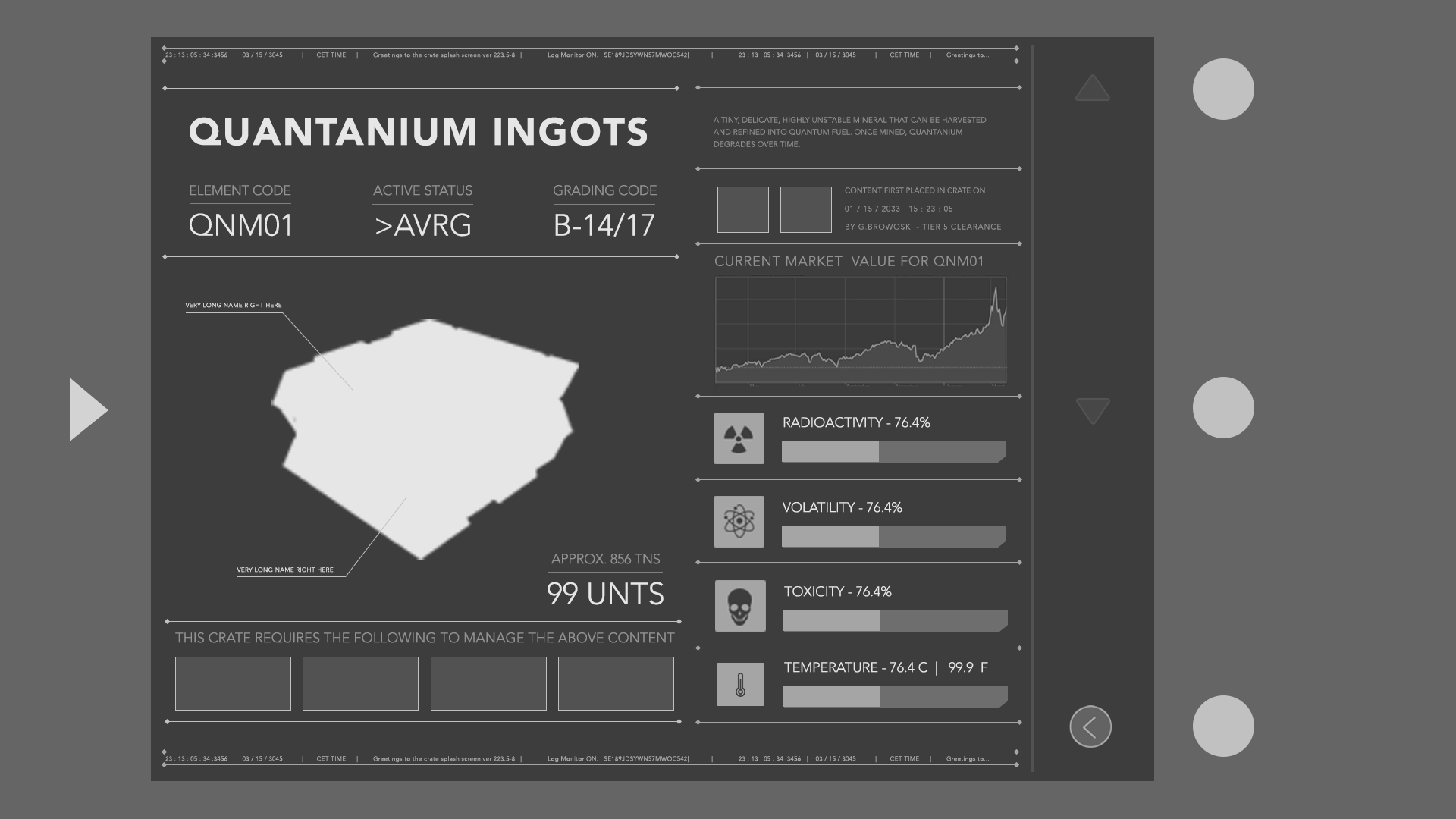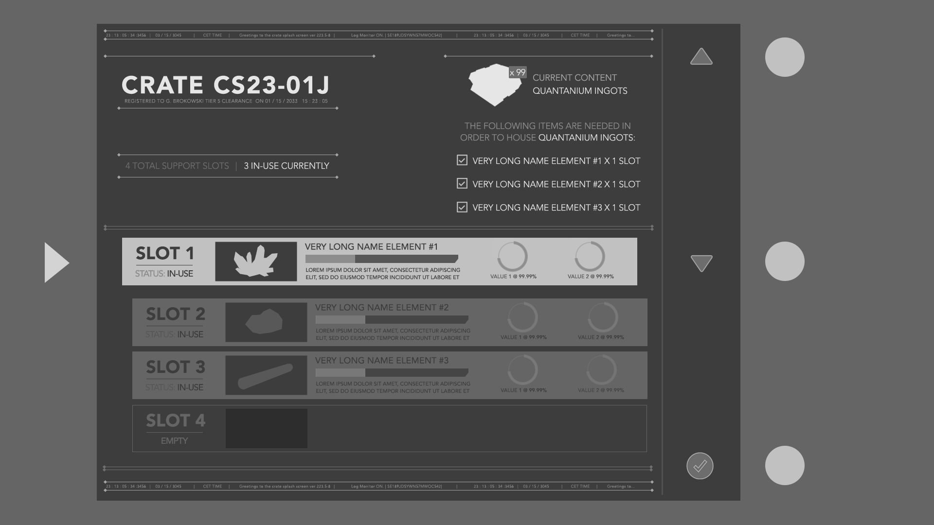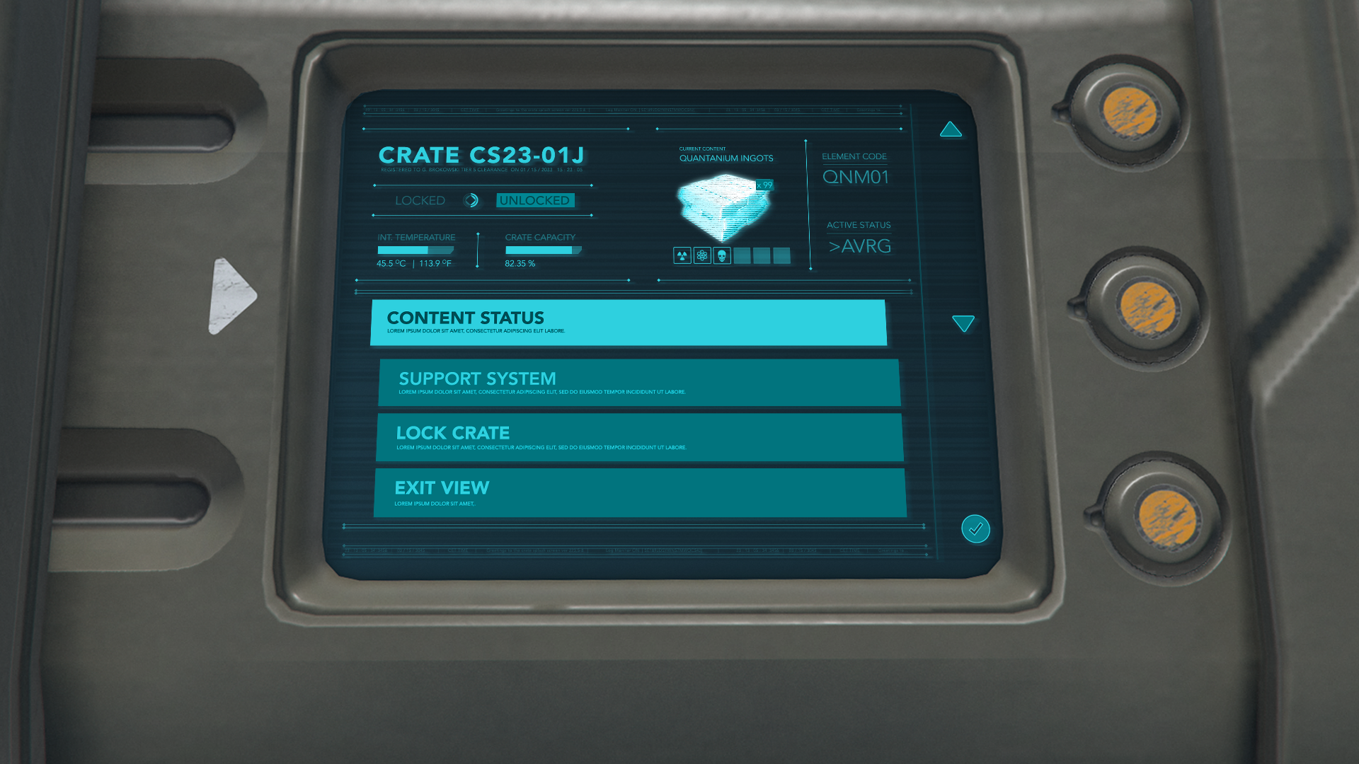 Designed the UI/UX system for a unique in-game cargo crate from the ground up.