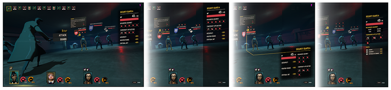 Maintained visual consistency while developing stylized UI to support a noir-punk atmosphere